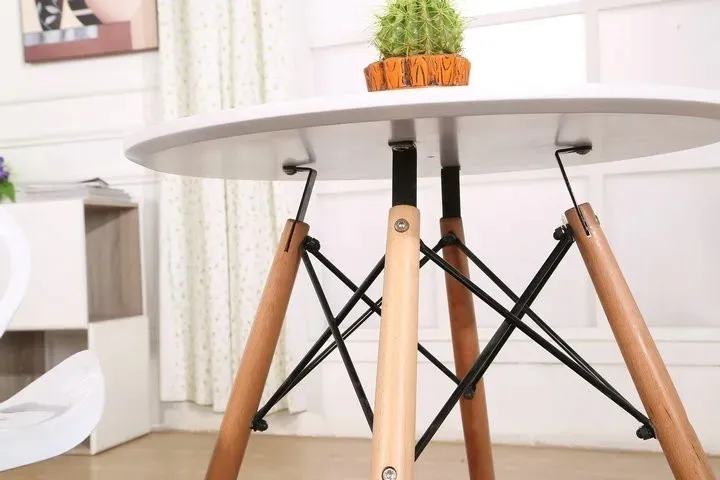 Łączenia te idealnie kontrastują z białym blatem stolika.